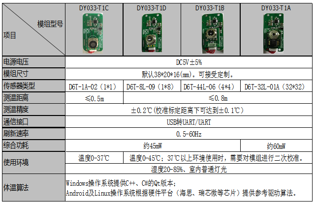 歐姆龍測溫模組是基于歐姆龍紅外高精度溫度傳感器以及先進(jìn)軟件算法的非接觸式測溫模組,款式多樣,有單點測溫型,陣列測溫型,以及熱成像測溫型等等,通過算法可實現(xiàn)測溫精度±0.2℃,具備數(shù)據(jù)實時輸出顯示,可通過USB接口直接連接電腦和手機,配合上位機軟件或者手機APP程序,使用十分方便。