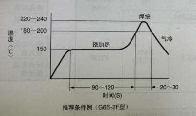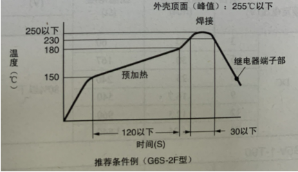焊接推薦條件雖然顯示出了印刷電路板面的溫度曲線(xiàn),但是各繼電器的條件可能會(huì)有所不同,因此請(qǐng)?jiān)趯?duì)各規(guī)格加以確認(rèn)的基礎(chǔ)上進(jìn)行使用,在焊接之后,請(qǐng)勿立即浸漬到清洗液等冷卻液中,會(huì)損傷繼電器的密封性,如下圖所示:
