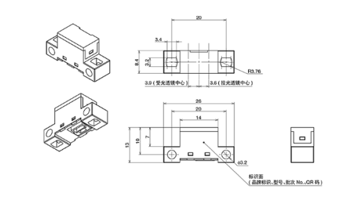 若把發(fā)光器和收光器分離開,就可使檢測距離加大。由一個(gè)發(fā)光器和一個(gè)收光器組成的光電開關(guān)就稱為對射分離式光電開關(guān),簡稱對射式光電開關(guān)。它的檢測距離可達(dá)幾米乃至幾十米。使用時(shí)把發(fā)光器和收光器分別裝在檢測物通過路徑的兩側(cè),檢測物通過時(shí)阻擋光路,收光器就動(dòng)作輸出一個(gè)開關(guān)控制信號(hào)。