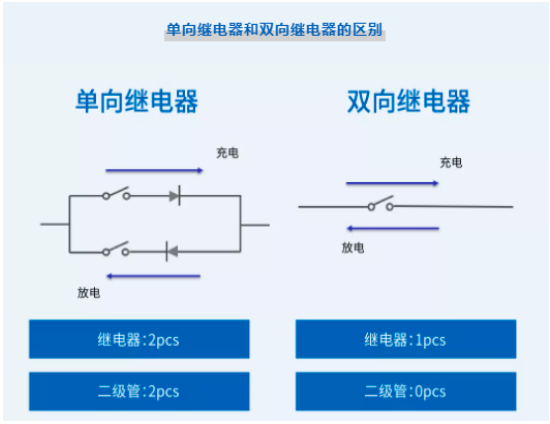 正反極性皆可使用,適用于充電、放電的應(yīng)用,和普通單向開關(guān)的繼電器相比,不僅通過節(jié)省部件數(shù)量讓電路設(shè)計(jì)更緊湊,還能節(jié)約成本。
