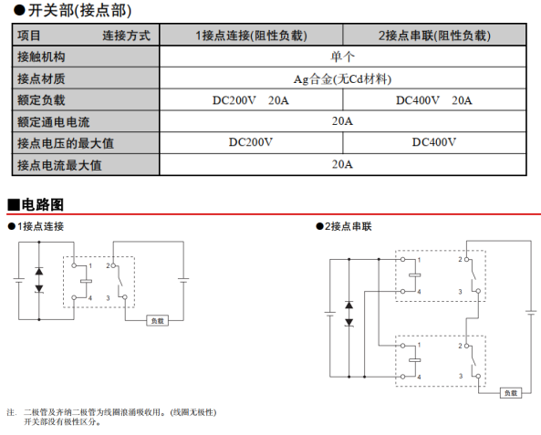 3、可實(shí)現(xiàn)無極性的DC200V 20A開閉,通過產(chǎn)品的2接點(diǎn)串聯(lián)可實(shí)現(xiàn)DC400V 20A開閉,串聯(lián)連接已取得UL/TUV/CQC認(rèn)證,安全可靠;