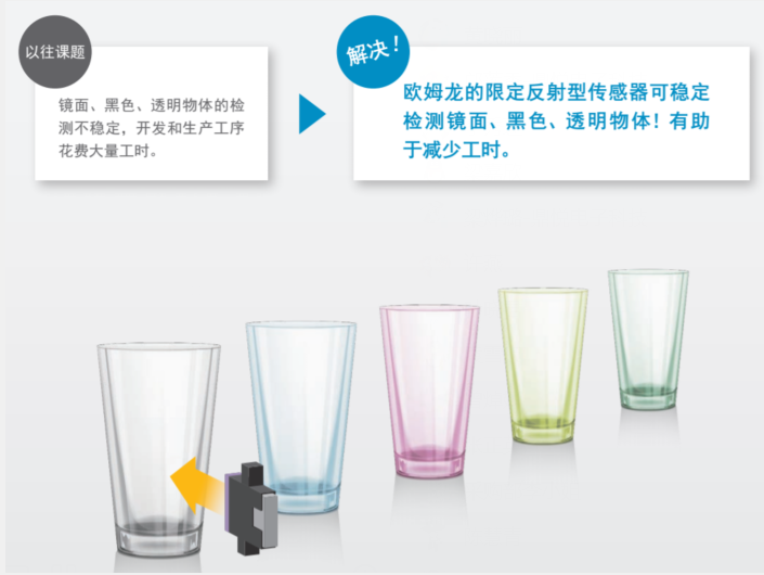 下面我們來介紹下既能檢測(cè)透明,又能檢測(cè)有無物體傳感器歐姆龍限定反射型傳感器 B5W-LB系列的特點(diǎn)