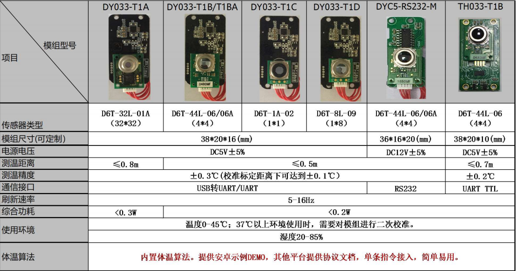 我們同時也可以給您提供一整套的測溫解決方案!我們可以根據(jù)客戶測溫需求,搭載1*1,1*8, 4*4,32*32歐姆龍測溫傳感器,實現(xiàn)檢測距離0.3-0.8米測溫,測溫精度可以達到±0.3℃(校準(zhǔn)標(biāo)定距離下可達到±0.1℃)。也可以滿足客戶的多種串口通訊方式(1)USB轉(zhuǎn)UART/UART;(2) RS232 ;(3) UART TTL。模塊資料如下:
