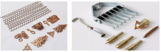 工作原理:利用低電壓、高強(qiáng)度的電流流過兩塊鋼板(或鋼板與介子)時產(chǎn)生的高電阻熱熔化接觸部分的金屬,用焊槍電極擠壓力把它們?nèi)酆虾附釉谝黄穑儆美喂ぞ呷鐟T性錘,實(shí)現(xiàn)修復(fù)板件缺陷的目的。附圖工具:圖1介子墊圈 圖2:碳棒 銅頭