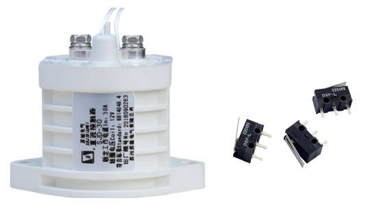 直流接觸器為了檢測主觸點的通斷情況,通常還設(shè)有一組輔助觸點,該組輔助觸點通常采用微動開關(guān)來實現(xiàn),也就是說,現(xiàn)有技術(shù)的這種直流接觸器設(shè)有一個微動開關(guān),用來檢測主觸點的通斷情況,實現(xiàn)該設(shè)計方案時,是在推動桿上裝有一撥動臂,在直流接觸器內(nèi)的對應(yīng)位置裝上述微動開關(guān),當(dāng)推動桿帶動動簧運動使主動觸點和主靜觸點接觸時,推動桿同時帶動撥動臂運動,通過撥動臂觸動微動開關(guān)的動臂,使微動開關(guān)接通或斷開,通過直流接觸器的電路板對微動開關(guān)接通或斷開信號的檢測,從而實現(xiàn)對主觸點通斷情況的檢測。