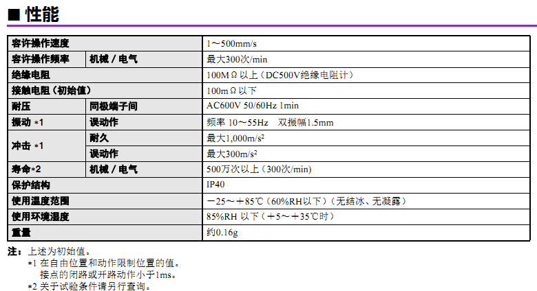 ? 高負(fù)荷型也擁有很長的使用壽命。(OF=1.2N、壽命500萬次)