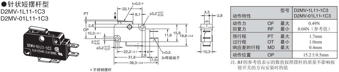 歐姆龍微動(dòng)開關(guān),D2MV-01L22-1C2,歐姆龍微動(dòng)開關(guān)D2MV
