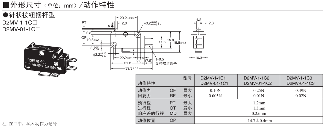 歐姆龍微動開關(guān),D2MV-1-1C3,歐姆龍微動開關(guān)D2MV