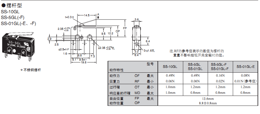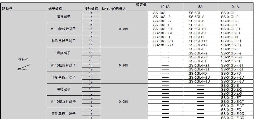 備有0.1A~10.1A型的各個(gè)品種,產(chǎn)品規(guī)格齊全,是歐姆龍暢銷的微動(dòng)開關(guān)。