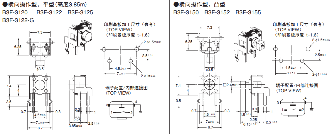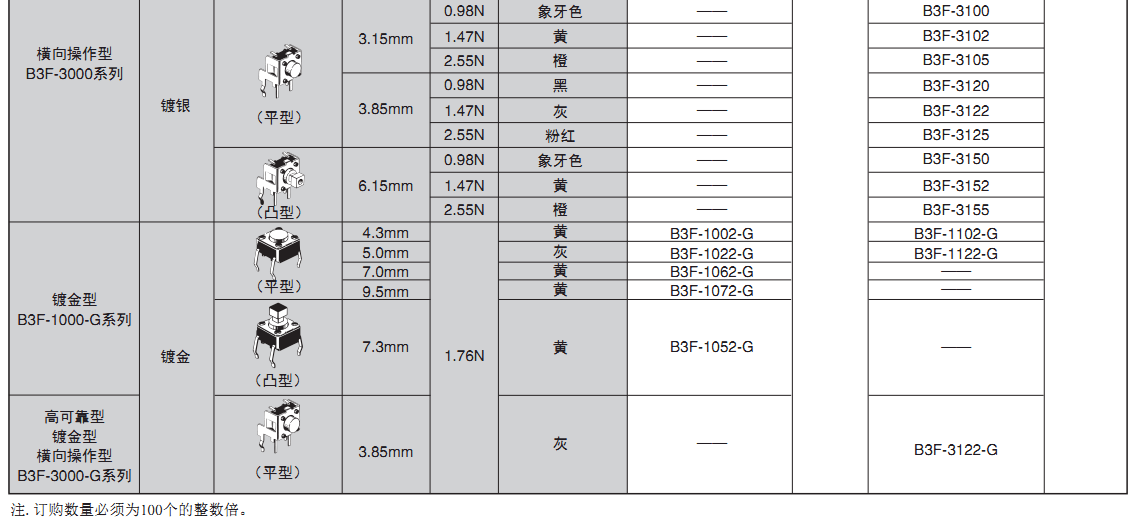 6mm方形、12mm方形具有橫向操作、高負(fù)載、鍍金型等全系列產(chǎn)品