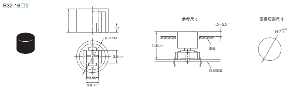 B3F、B3FS、B3W的凸型柱塞類型專用鍵頂