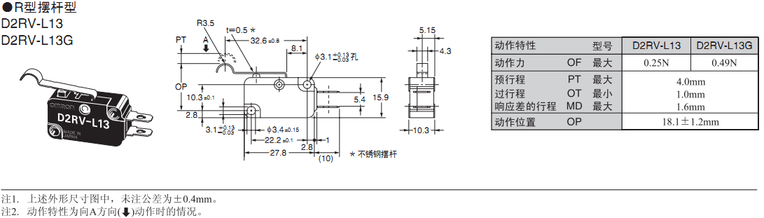 歐姆龍微動開關(guān), D2RV-L13,歐姆龍微動開關(guān)D2RV