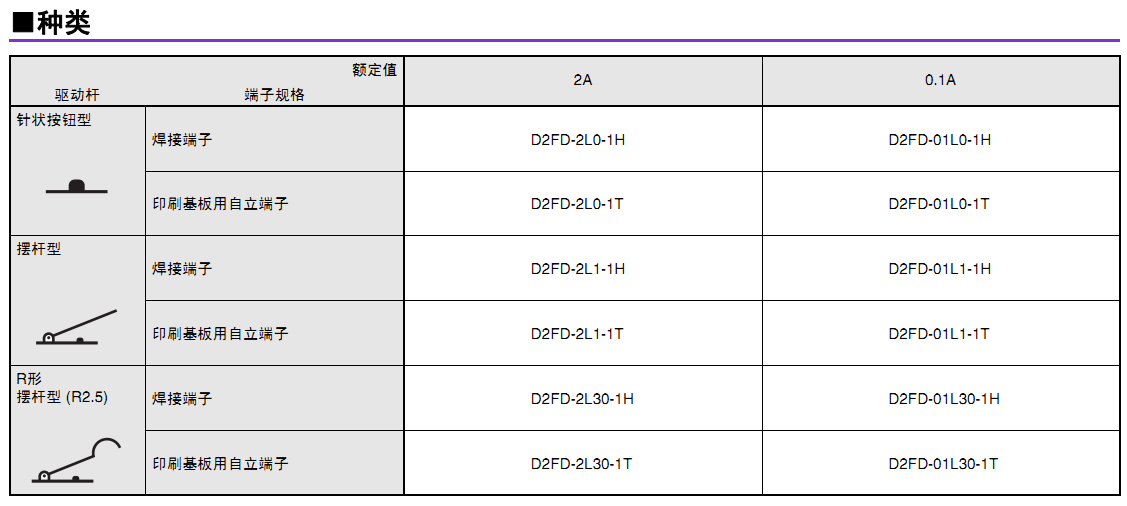 • 可動(dòng)片為1片彈簧構(gòu)造,支持AC125V 2A開關(guān),更有微小負(fù)載型可供選擇。