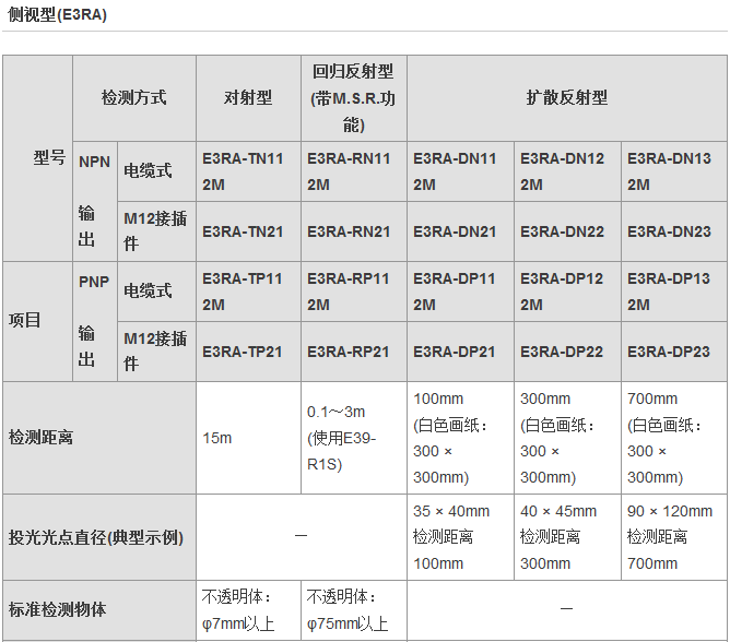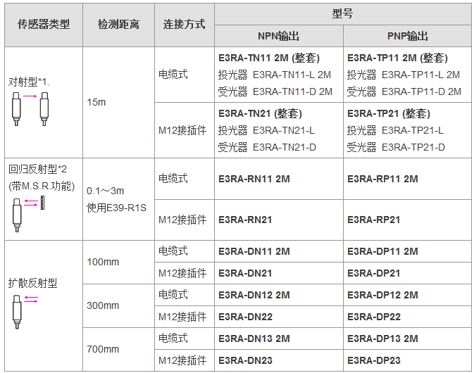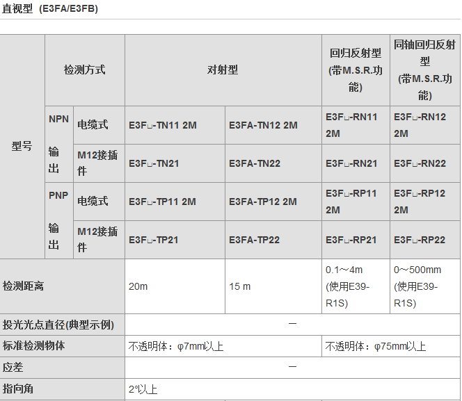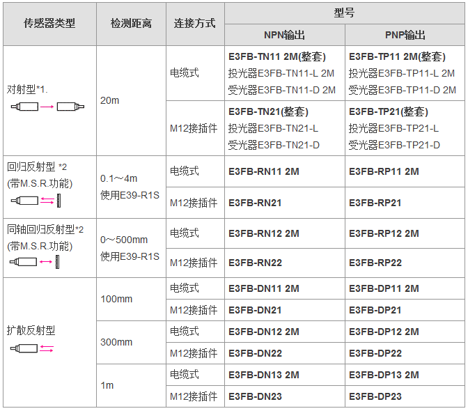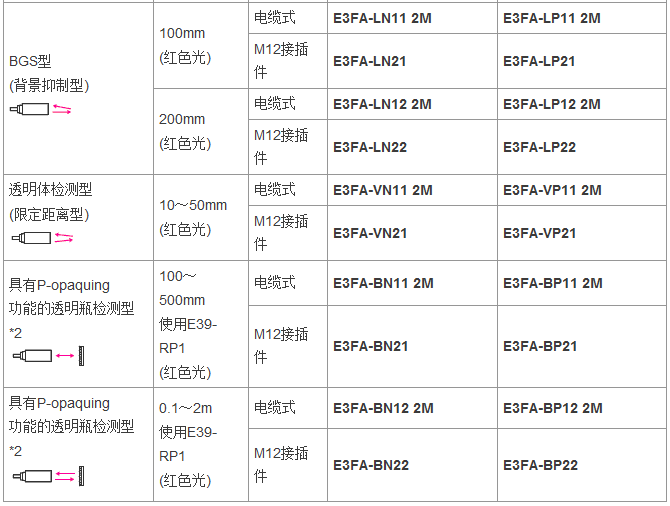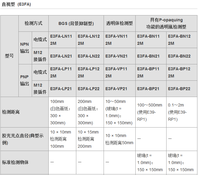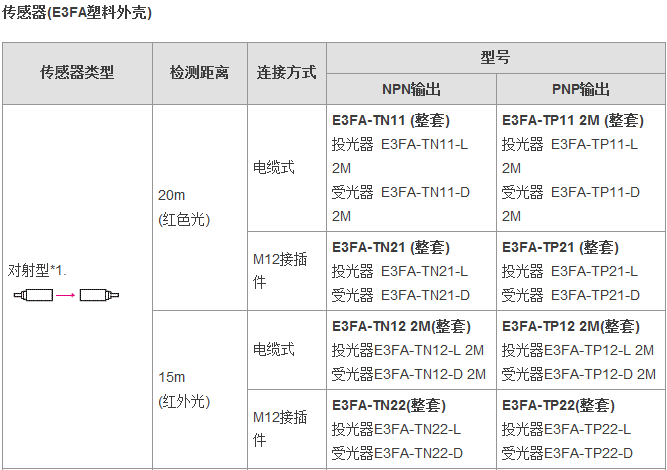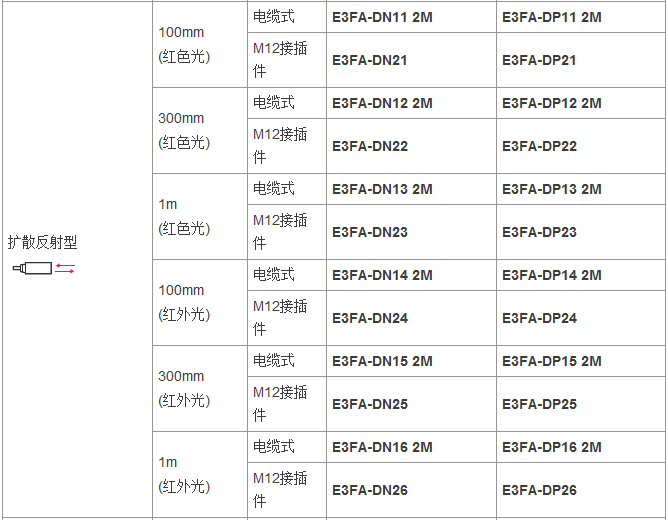 從食品飲料、紡織、制陶制磚到物流,E3FA/E3RA/E3FB型傳感器通常安裝于各行各業(yè)的廠房之中,無論是何種應(yīng)用總有一款適合您。這一應(yīng)用廣泛的光電傳感器系列具有高可靠性和增強的性能,其中包含對射型、回歸反射型和擴散反射型(具有直視型和側(cè)視型兩種版本)。對于某些特定應(yīng)用,背景抑制型、限定反射型和透明體檢測型也提供了直視型版本。