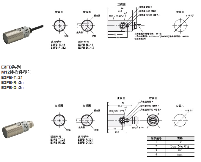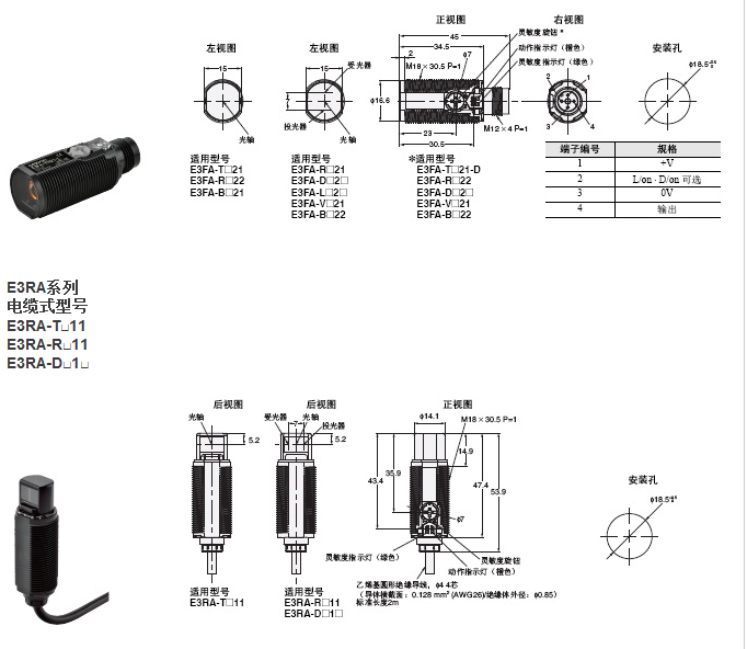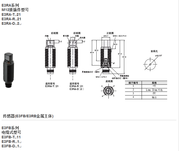 歐姆龍E3FA/E3RA/E3FB小型圓柱型光電傳感器安裝簡單,設(shè)定操作簡便直觀。大而結(jié)實的旋鈕方便安裝人員對傳感器進行調(diào)節(jié),明亮的大功率紅色LED清晰可見,即使在較長距離下也便于進行光軸對齊操作。傳感器的LED狀態(tài)指示燈同樣具有較長的可見距離與較大的可見角度。