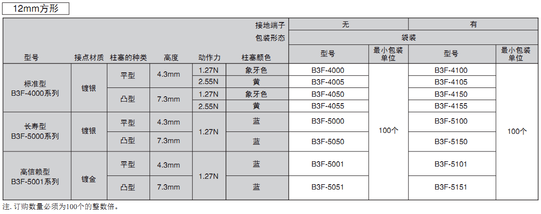 6mm方形、12mm方形具有橫向操作、高負(fù)載、鍍金型等全系列產(chǎn)品
