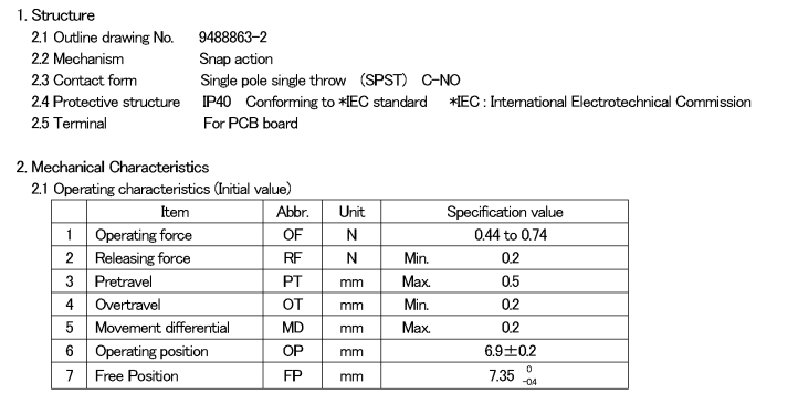 印刷基板用端子還備有獨(dú)立端子、直角端子。鼠標(biāo)開關(guān)的型號(hào)有: