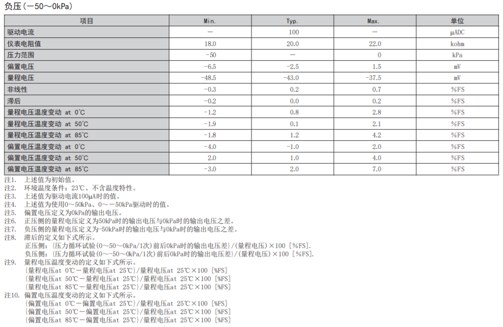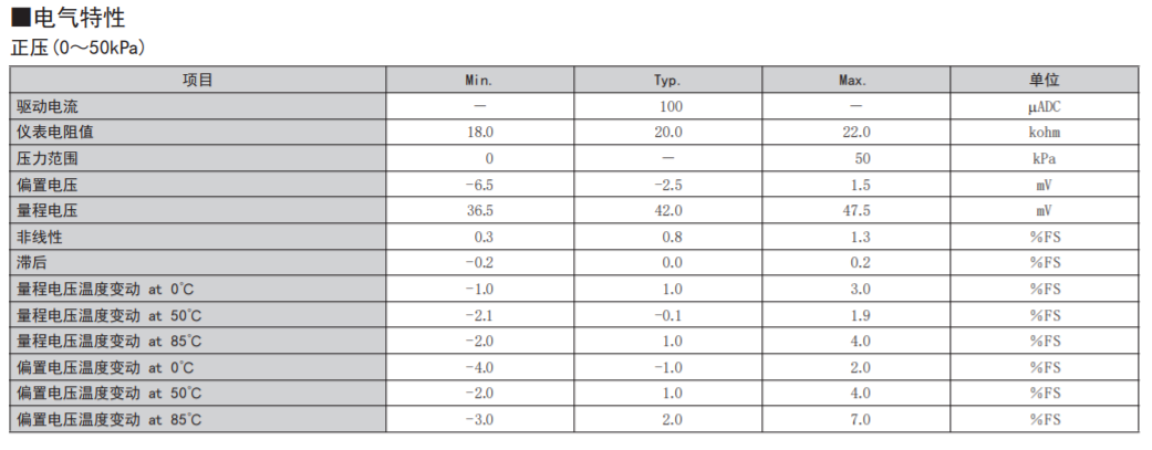 • 在-50kPa~+50kPa的壓力范圍內具有優(yōu)異的電氣特性。