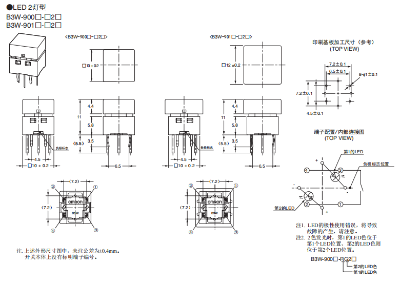基板插入安裝型LED2燈小型照光輕觸開關(guān)