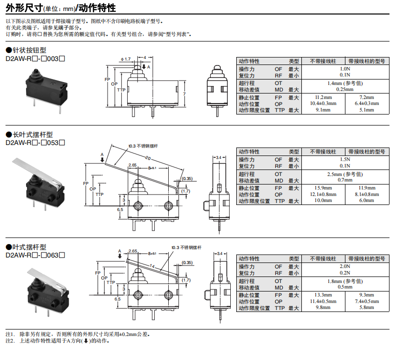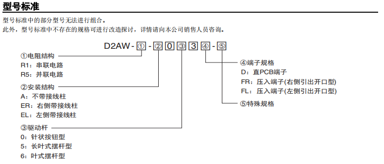D2AW-R 電阻內(nèi)置型微動開關(guān)