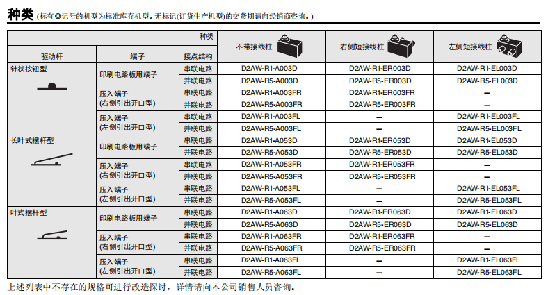 • D2AW-R 電阻內(nèi)置型微動開關(guān)