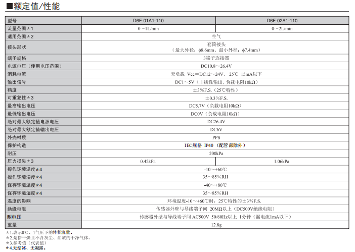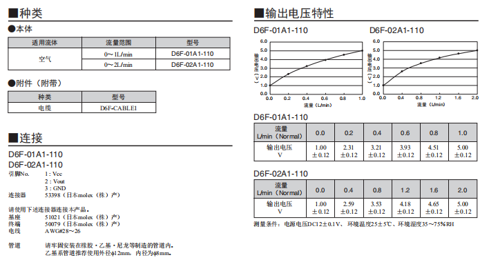 • D6F-A1流量傳感器 量程0-2L/min